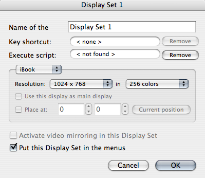 Modify resolutions, color depths, display position, main display, video mirroring in one shot: